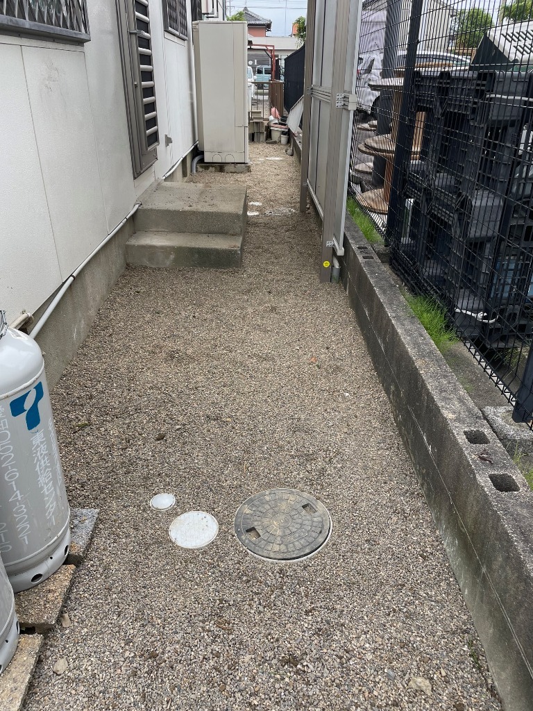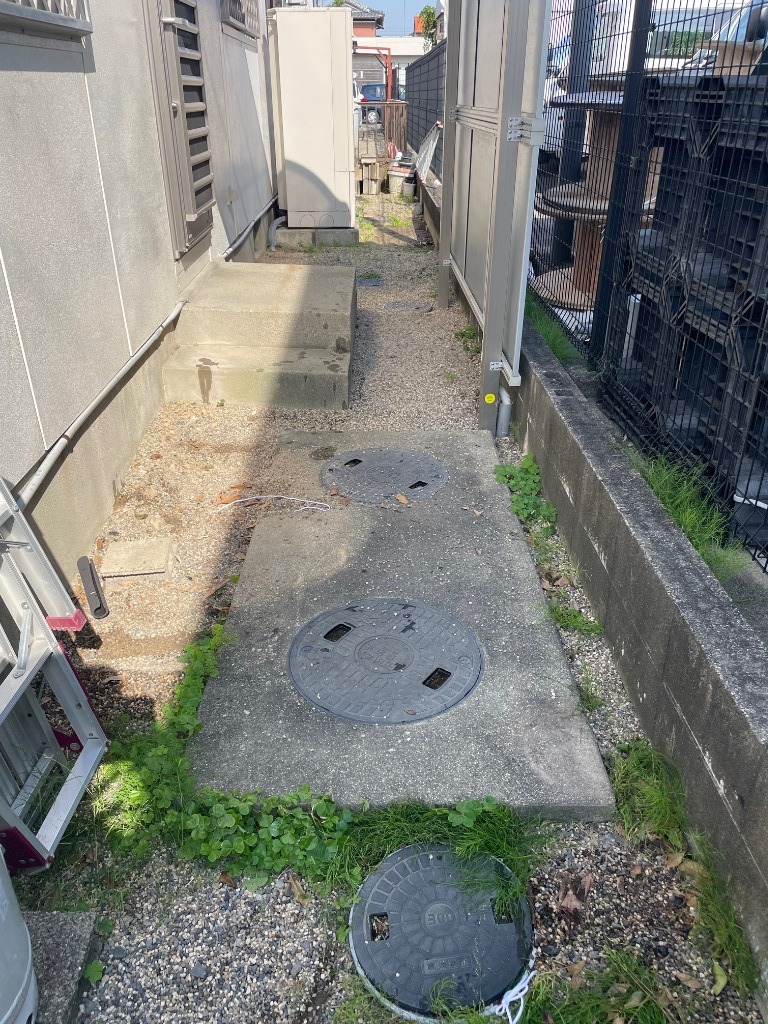 桜島町S様邸にて、下水への切替工事にともない浄化槽を撤去してスッキリしました。 施工前 施工後